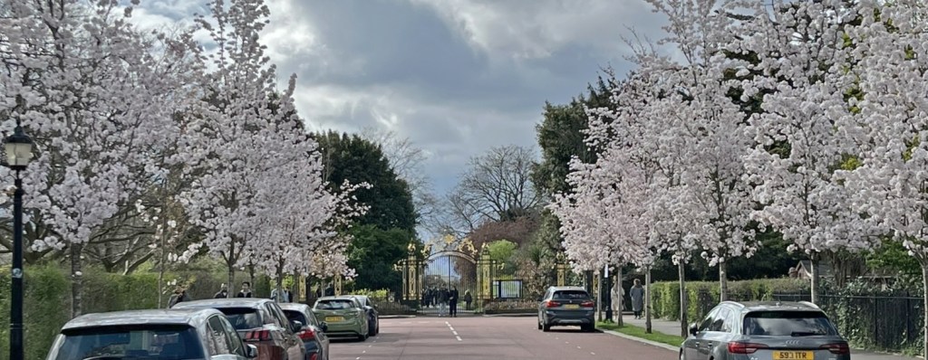 Pink cherries, golden gates – Chester Road, the Regent’s Park