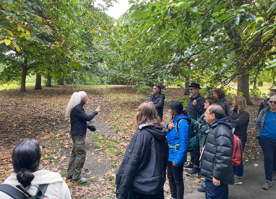 Meeting at the Cutty Sark, we crossed the Old Naval College, climbed up through Greenwich Park, through the flower garden with its forest of cedars, onto Blackheath; from there along the ridge with views north to the high rises of Canary Wharf, to the Jacobean palace at Charlton Park; then down through Maryon-Wilson Park to Gilbert’s Pit.