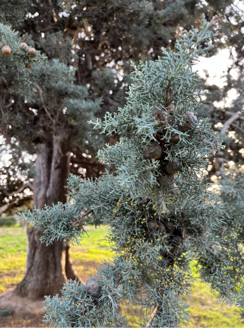 An Arizona Cyprus Cupressus arizonica I think, in flower in Hermit Road Recreation Ground.