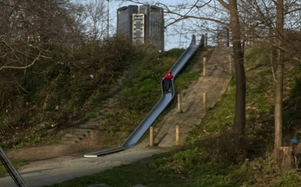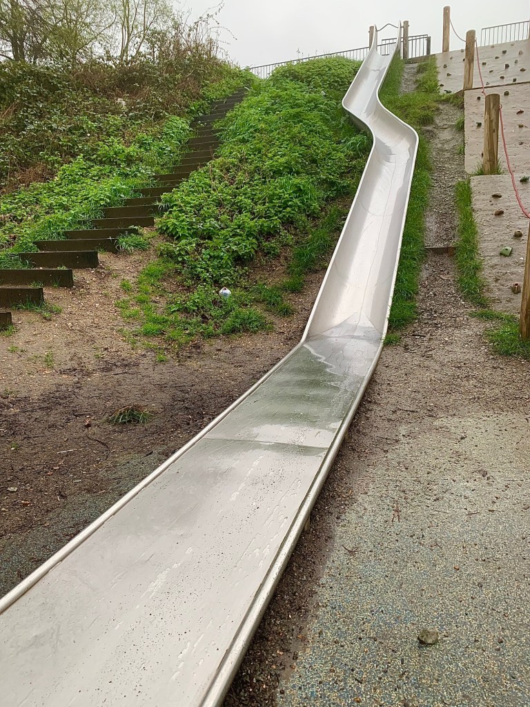 Here’s how accessible the walk is – Abbey Lane Park. Slide down from the Greenway (aka Northern Outfall Sewer)