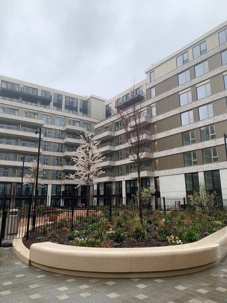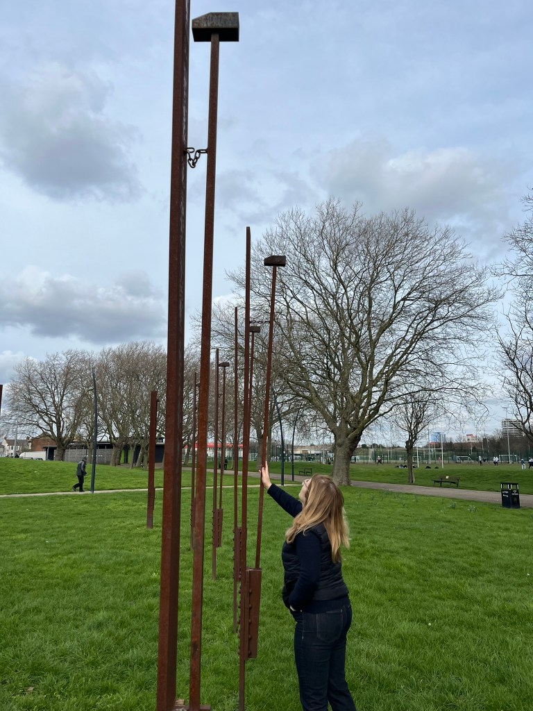 Botanic Square, City Island, Dec 2023, with powder coated artwork by Rana Begum Catching Colour