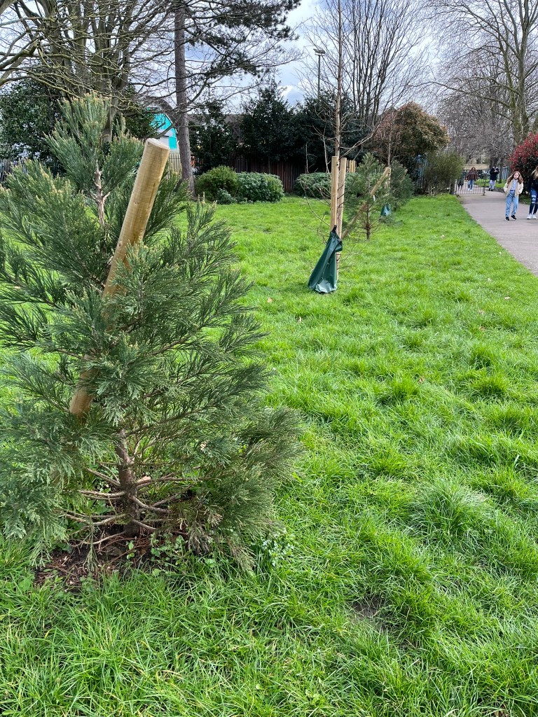 Newham Council has just planted a host of trees in Hermit Road Rec – Golden Delicious apples, an alternating avenue of oak and red leaf maple, and also (this photo above) a number of giant sequoias and dawn redwoods. Talk about thinking ahead, these trees will be giants in 300 years’ time!